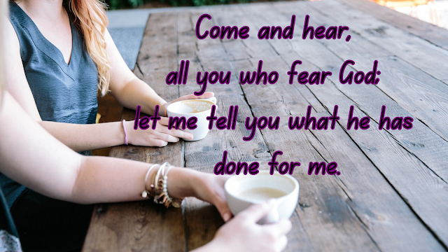 Come and hear, all you who fear God; let me tell you what he has done for me.